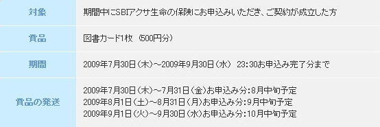「今こそSBIアクサ生命へ! ご成約いただいた方に図書カード500円分プレゼント!」のお知らせ