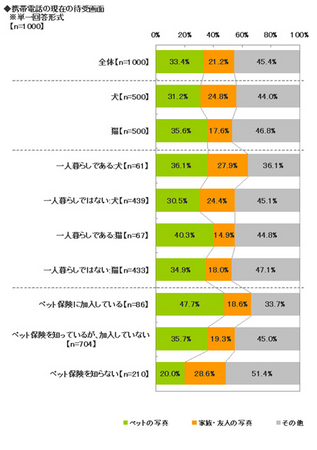 一人暮らしの飼い主で待受画面をペットの写真にしている割合が高く、