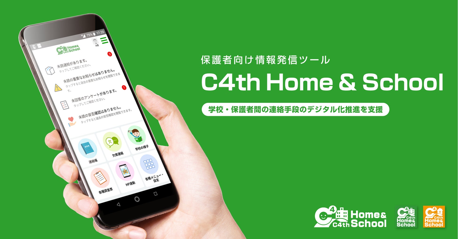 「C4th Home & School」は学校・保護者間の連絡手段のデジタル化推進を支援する、保護者向け情報発信ツールです。連絡帳・お便り・欠席連絡・アンケートや各種調査票などの機能を有し、緊急時には安否確認通知が表示されます。アプリにプッシュ通知が送信されるため、すぐに必要な連絡に気付くことができます。先生方の「伝えたい」と保護者の「知りたい」を繋ぎ、学校現場で最適な相互コミュニケーションを実現します。