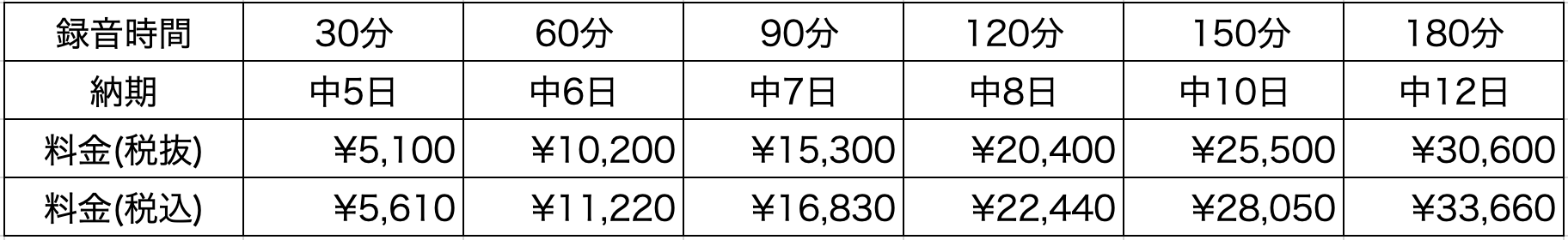 ・複数の音声・動画ファイルを同日にご依頼いただいた場合は、全ファイル(データ)を合算した時間での納期となります。