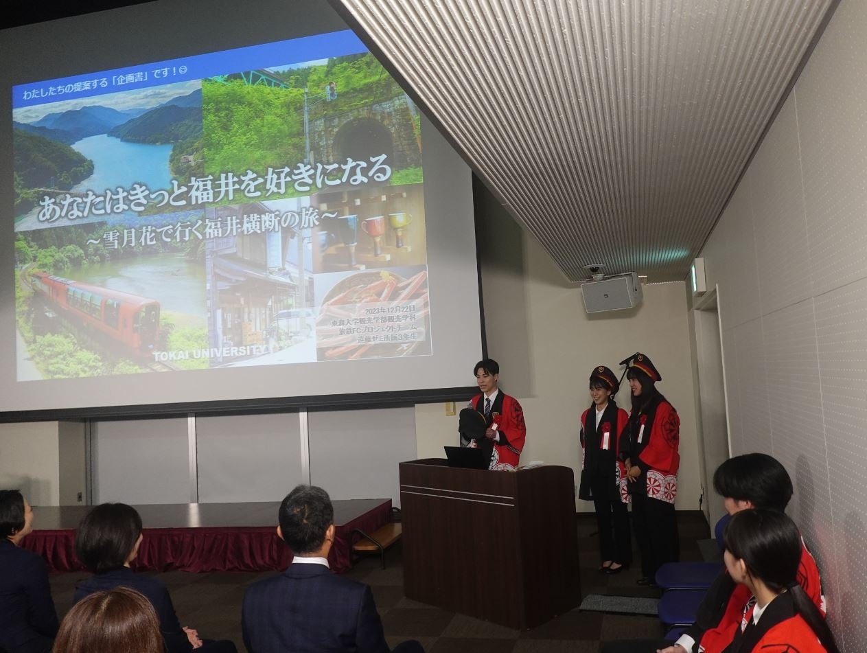 一般部門では、鉄道旅行ファンから「夢の鉄道旅行企画」を募集。42作品の中から「ベストアマチュア賞」は、2024年度のデスティネーションキャンペーン開催地である福井県を対象とした、矢部 航平さん(東海大学遠藤ゼミ 鉄旅FCプロジェクトチーム)の作品「あなたはきっと、福井が好きになる。~雪月花で行く福井横断の旅~」が受賞し、賞金と記念品が贈られました。