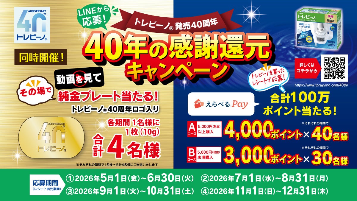 トレビーノ®発売40周年を記念し、「40年の感謝還元キャンペーン」を実施します。トレビーノ®商品を購入し、LINEから応募いただくと、抽選でえらべるPayポイントが当たります。