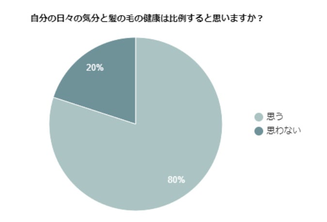 綺和美では、「自分の日々の気分と髪の毛の健康は比例すると思いますか?」というアンケートを行いました。すると、80%もの人が「思う」と回答したのです。
