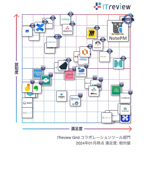 株式会社プロジェクト・モードが提供する、ナレッジ管理SaaS「NotePM ( https://notepm.jp )」は、アイティクラウド株式会社運営のIT製品レビューサイト「ITreview」において、満足度・認知度ともに優れた製品であると評価され、「ITreview Grid Award 2024 Winter」のチームコラボレーション部門とマニュアル編集・作成部門、グループウェア部門において「Leader」を受賞いたしました。