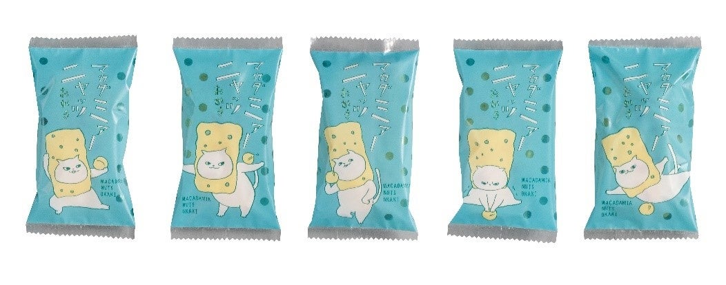 その1:単品人気四天王「マカダミアナッツおかき」がネコ柄パッケージの「マカダミアニャッツおかき」に変身