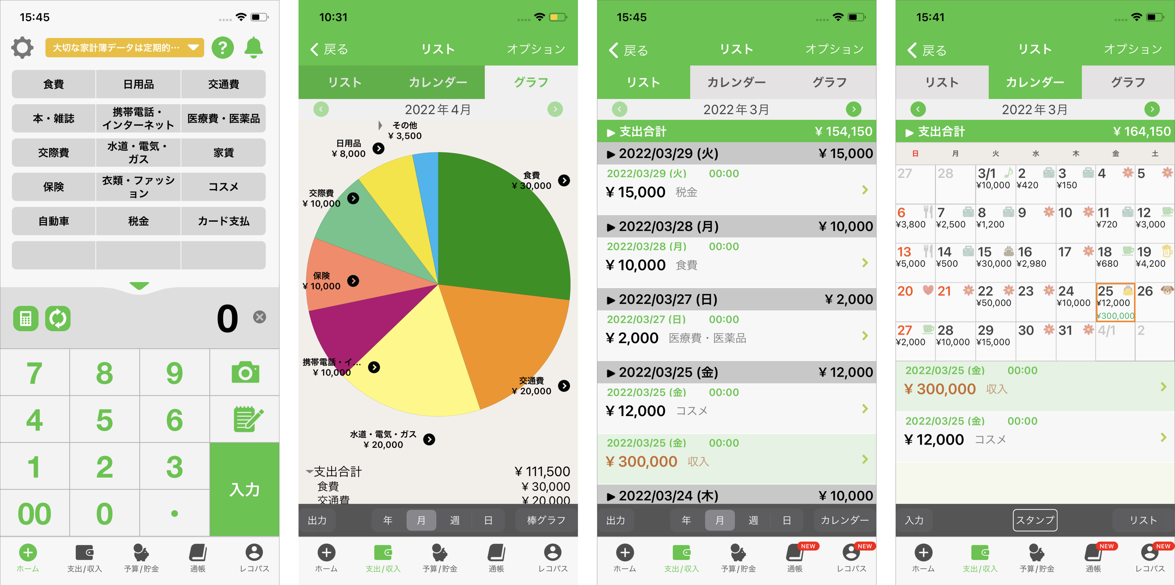 お金を使った時にその場ですぐにつけることができ、自動で集計・グラフ化されるので、家計簿は面倒で続かないという方でも続けられるアプリです。