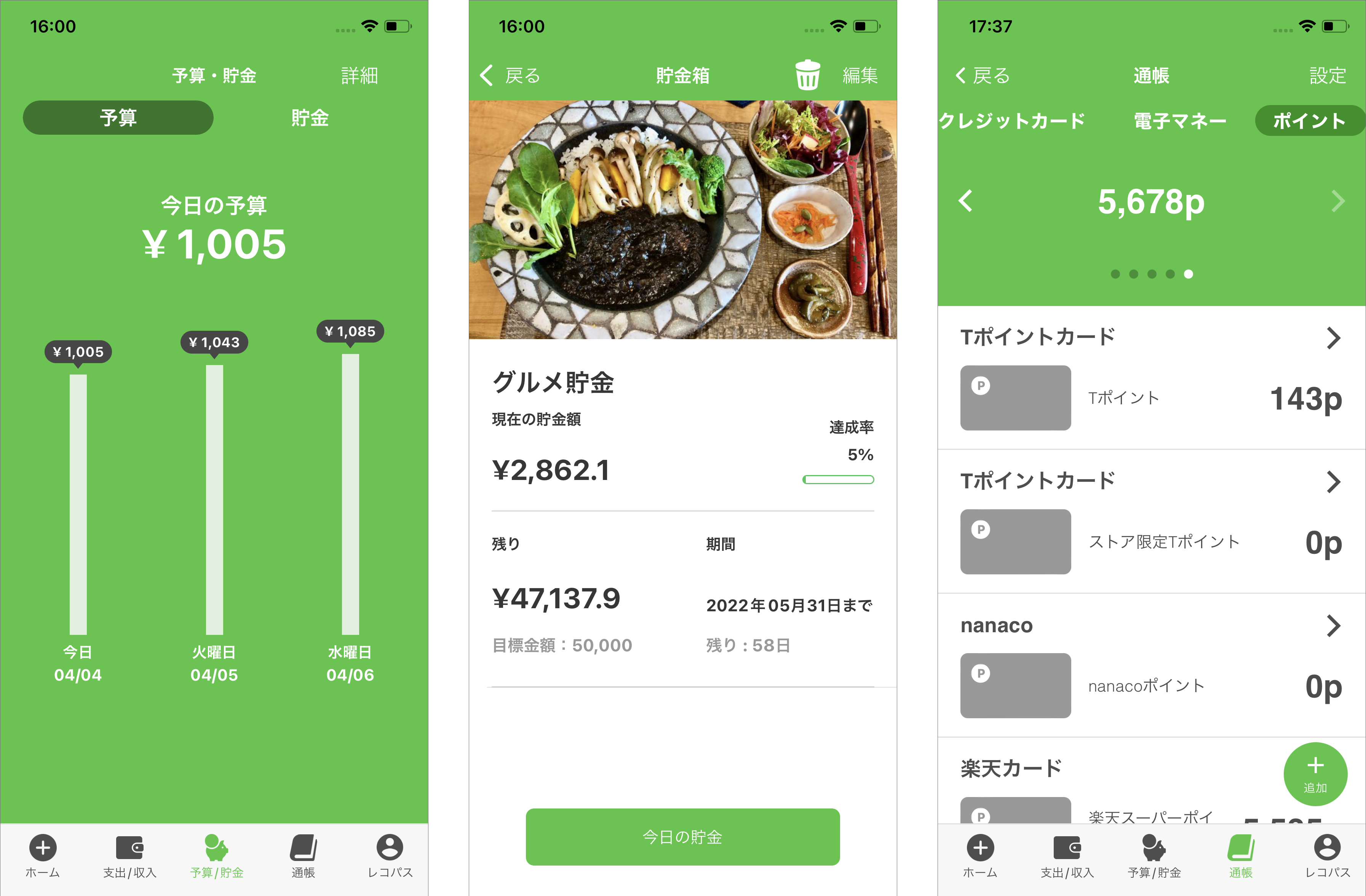 2021年9月1日からはiOS版おカネレコにて、マネーツリー株式会社の金融データプラットフォーム「Moneytree LINK」と連携し、金融機関のデータ(銀行口座・クレジットカード、電子マネー、ポイントカード)を管理できる『通帳機能』の提供も開始しています。