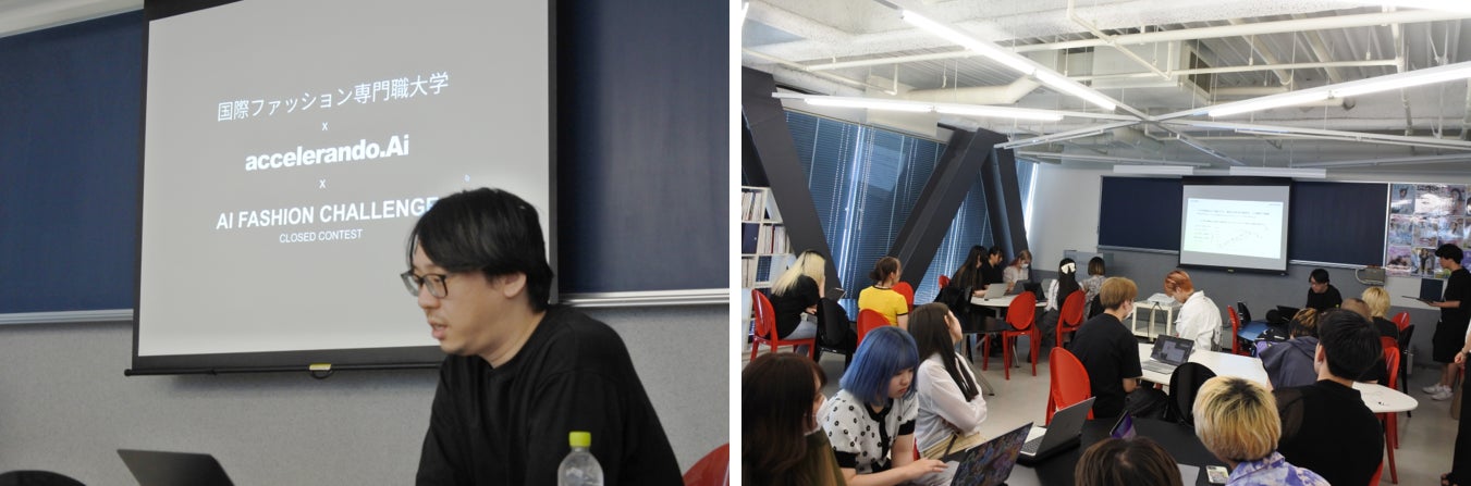 今回はジェネレーティブAI(以下、生成AI)の概要から、生成AIを活用して作ったオリジナルファッションアイテムをもとに開催したコンテストの結果まで、2回にわたり行われた講義の様子をお届けします。