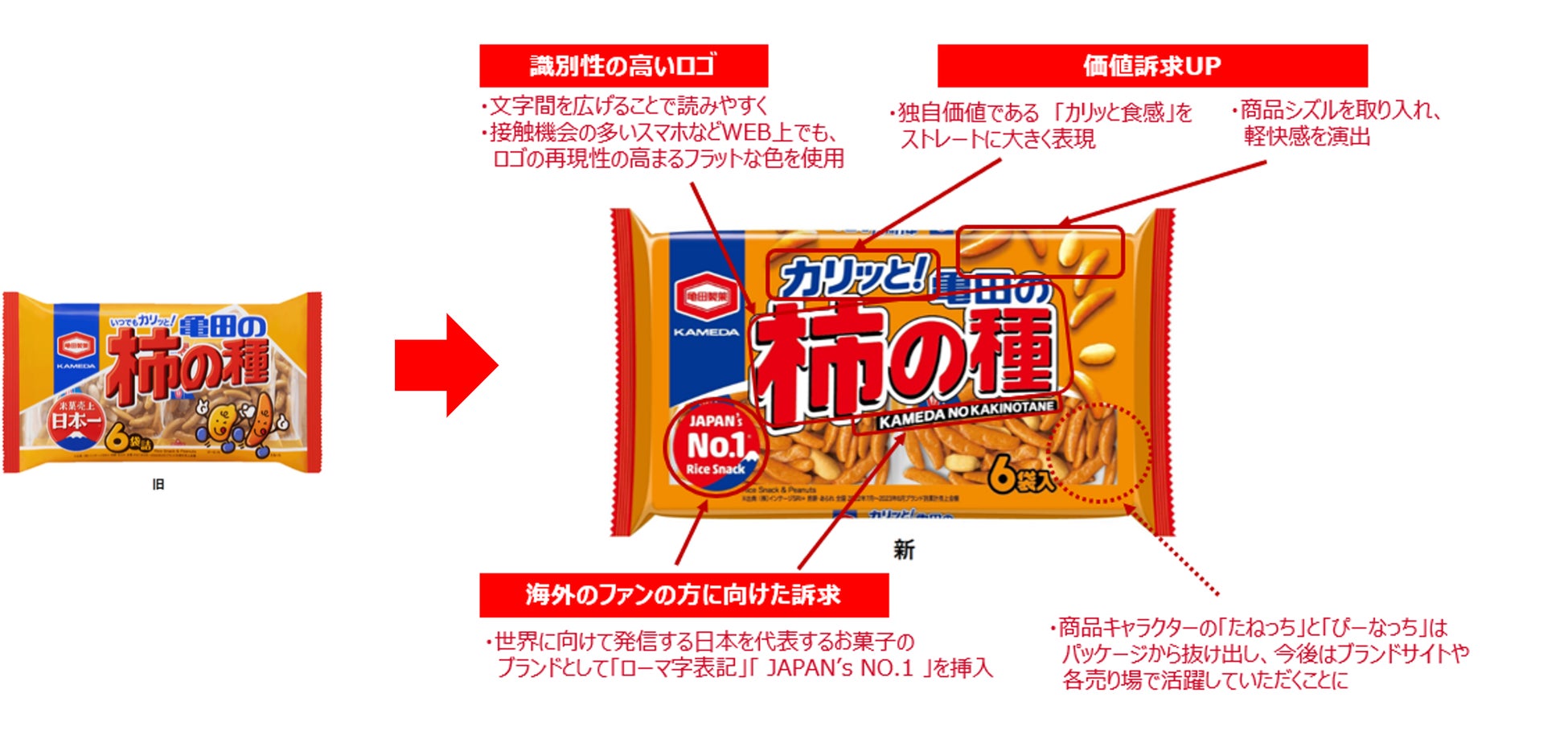 米菓No.1※ブランド『亀田の柿の種』8年振りのパッケージリニューアル 2024年2月上旬より全国展開