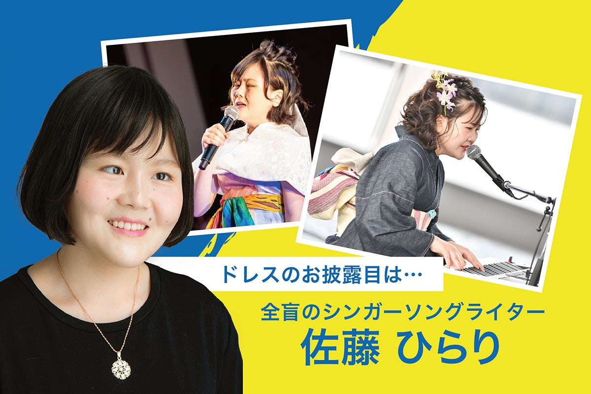 まずはじめに2022年10月22日(土)「SPORTS of HEART 2022 in 大分」に出演する全盲のシンガーソングライター佐藤ひらりさんに着用してもらい平和を願う歌声とともに初披露します。