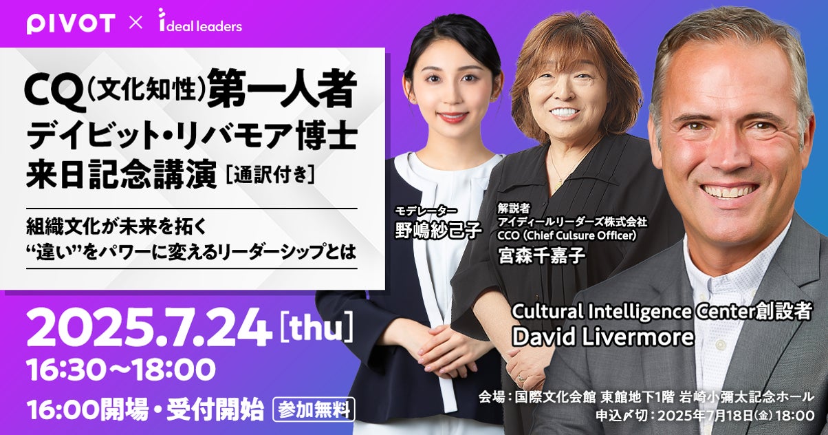 【PIVOT × Ideal Leaders】CQ(文化の知能指数)第一人者デイビット・リバモア博士 来日記念講演「組織文化が未来を拓く“違い”をパワーに変えるリーダーシップとは」開催のお知らせ
