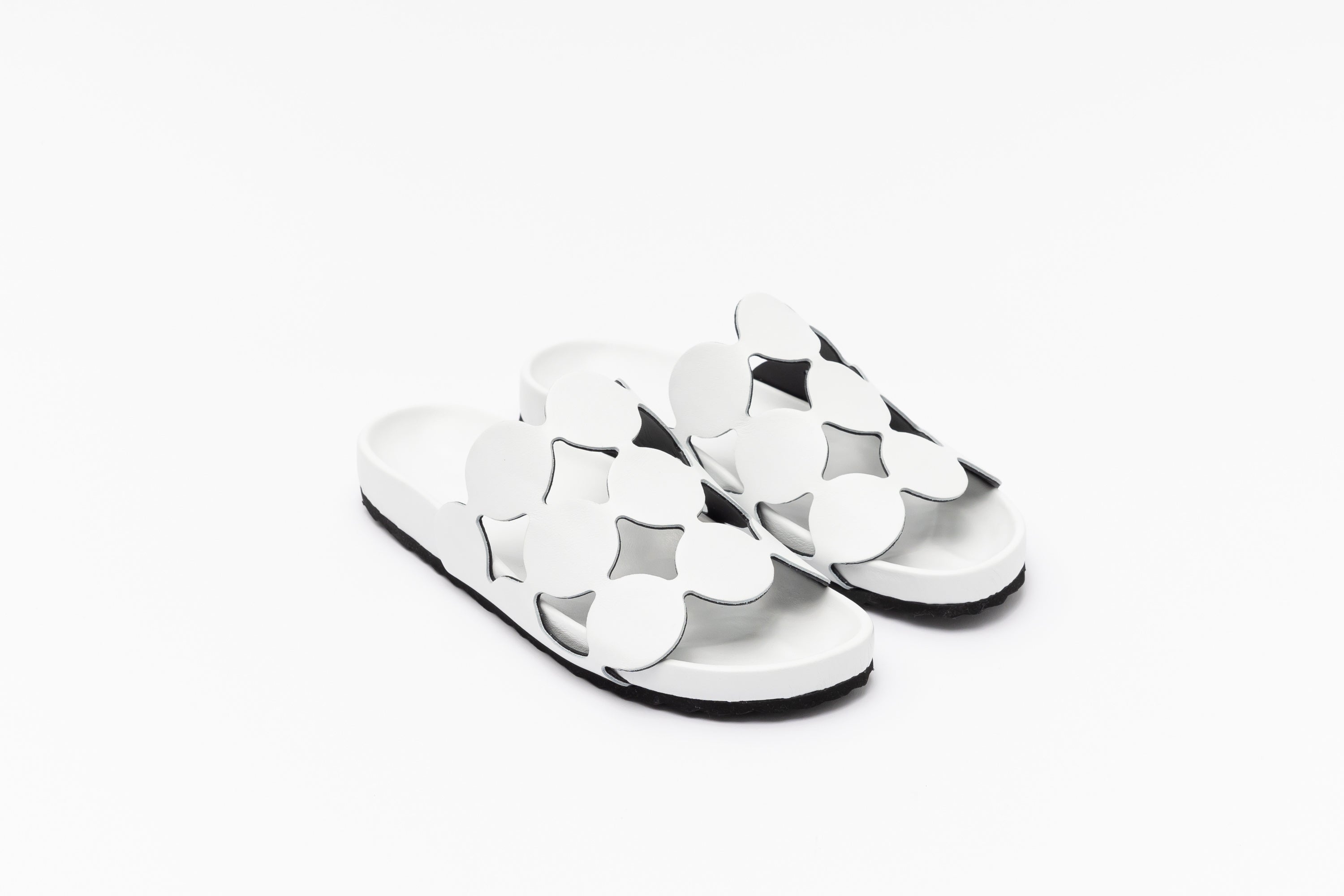 今回のポップアップストアでは、春らしいカラーの新作バッグとシューズをラインナップ。パープルとピンクのカラーパレットが目を引く「ALPHA BASKET」のラフィアバッグ 2種が、当ポップアップ限定で登場いたします。高級天然素材のラフィアを使用し、職人が手作業で仕上げたこのバスケットは、丈夫で通気性に優れた実用性と、レザーストラップが包み込む上品なデザインが特徴です。外側にはブランドを象徴する「アルファ」モチーフのポケットがあしらわれ、内側の底部分にはレザーを使用することで機能性を高めました。「ALPHA BASKET」は、気ままなひとときを楽しむことのできるアイテムです。シューズからは、ブランドのアイコンでもあるエネルギッシュでポップな「Bulles」モチーフのサンダルが登場し、先行販売されます。