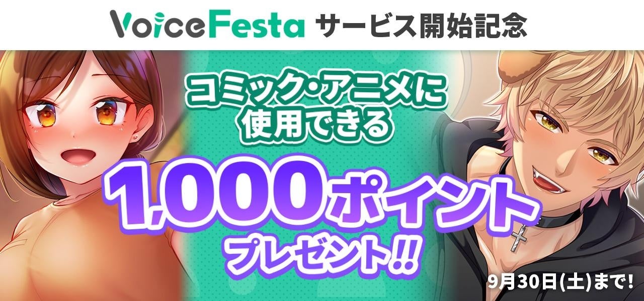 『VoiceFestaサービス開始を記念して、対象期間中に入会したすべてのお客様にComicFestaやAnimeFestaで使える1,000ポイントをプレゼントいたします。