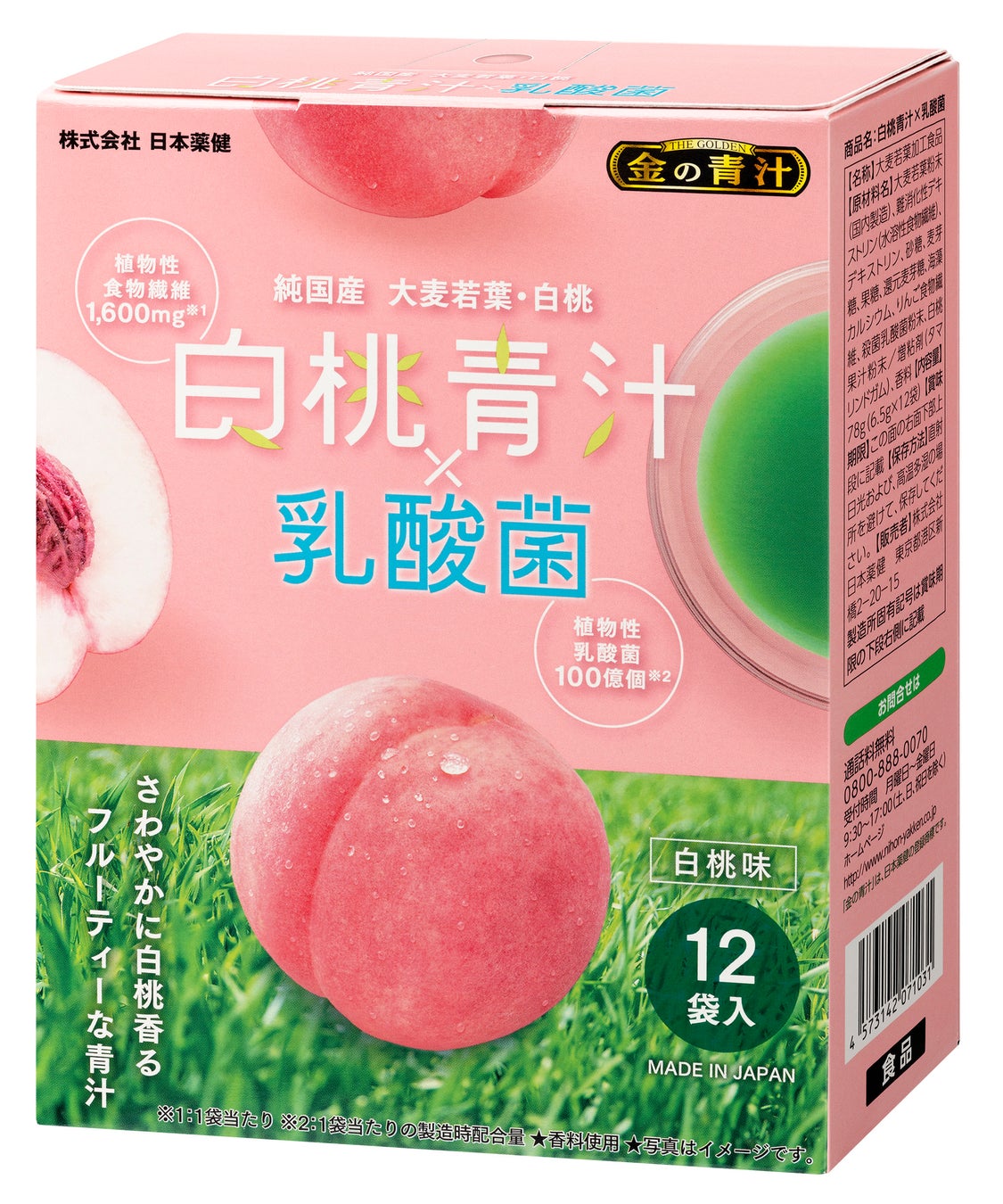 株式会社日本薬健(本社:東京都港区新橋二丁目20番15号、代表取締役:丸山 忠生)は、さわやかな白桃香る、フルーティな青汁「白桃青汁×乳酸菌」を、2022年9月21日(水)より全国のドラッグストアなどにて発売いたします。