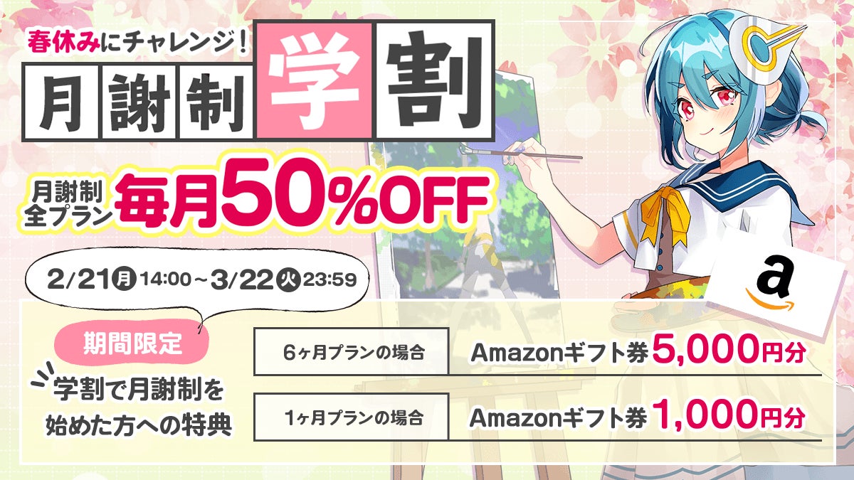 【期間限定】初月受講料が35%OFF!『春割』&学生限定!Amazonギフト券最大5,000円プレゼント!『学生応援キャンペーン』開催中!