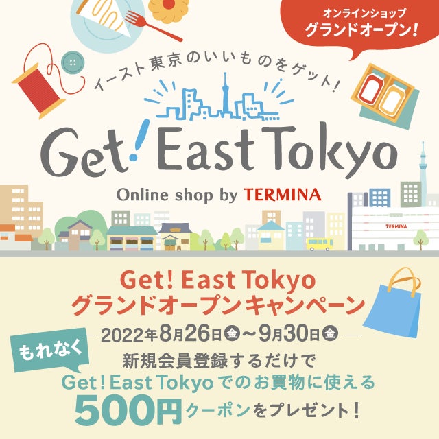 株式会社錦糸町ステーションビル(本社:東京都墨田区 代表取締役:柳 隆夫)が運営する駅直結型ショッピングセンターのテルミナは、墨田区をはじめとしたイースト東京エリアのいいモノを販売するオンラインショップ「Get!East Tokyo」を 2022 年 8 月 26 日(金)にグランドオープンいたします。