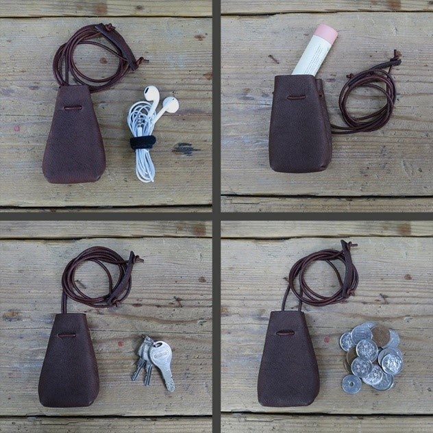 商品紹介:スタイリングにアクセントとして、ネックレス形の革のポーチです。 胸元に小さなポケットとして使えます。 AirPodsやイヤホン、鍵など、小さく、すぐに取り出したいものは、このポーチに入れて首にさげておくと便利です。