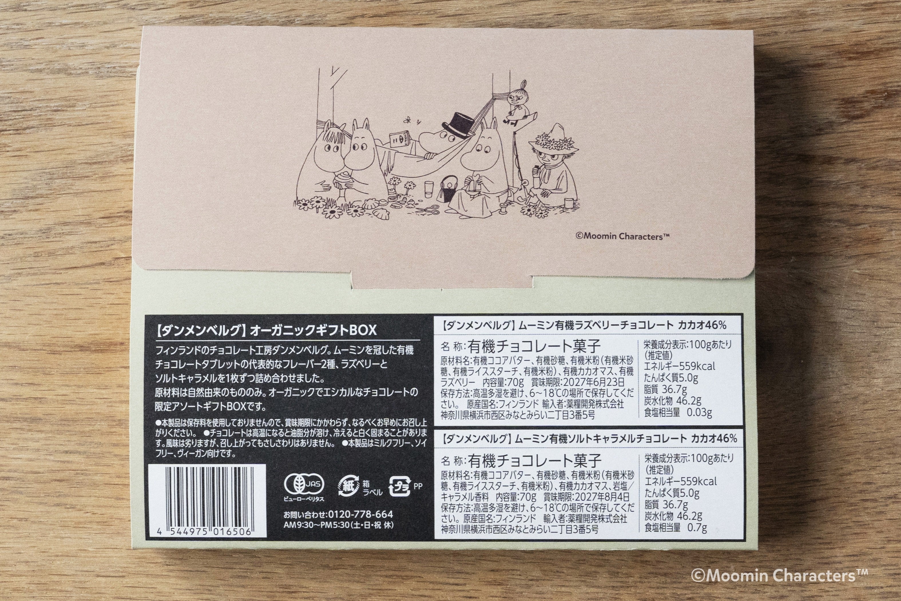 本ポップアップストアでは、ムーミンの世界観を大切にしたチョコレート商品を多数展開。なかでも注目なのは、2月4日より発売開始となる有機JAS認証を取得した「オリジナルギフトボックス」(税込2,980円)です。