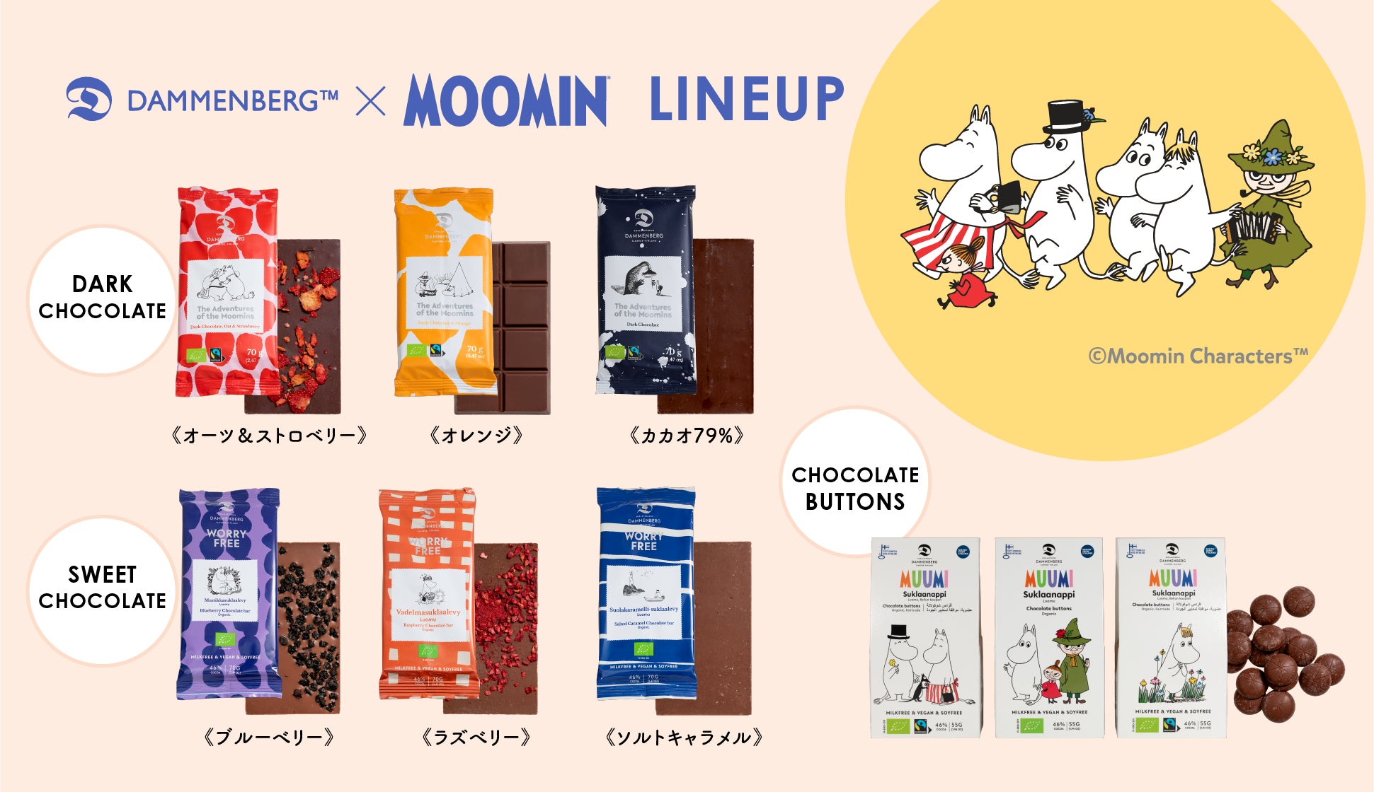 希少なクリオロ種のカカオ79%など全7種類のムーミンチョコレートとオリジナルギフトボックスを取り揃え、幅広い世代のお客様にお楽しみいただけます。