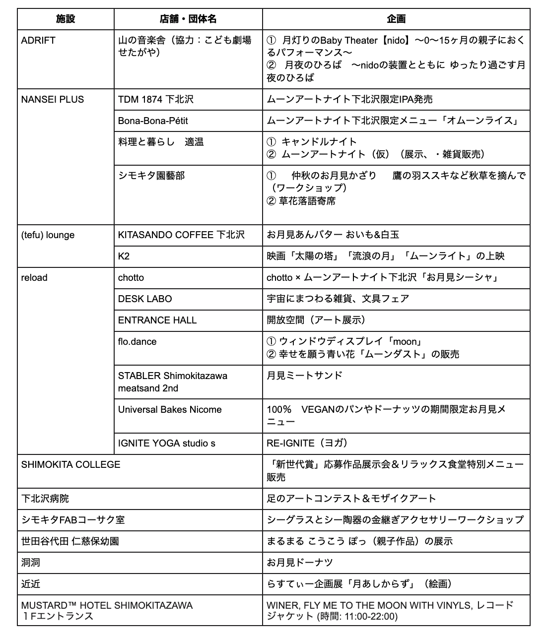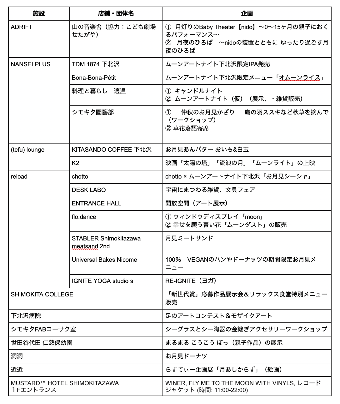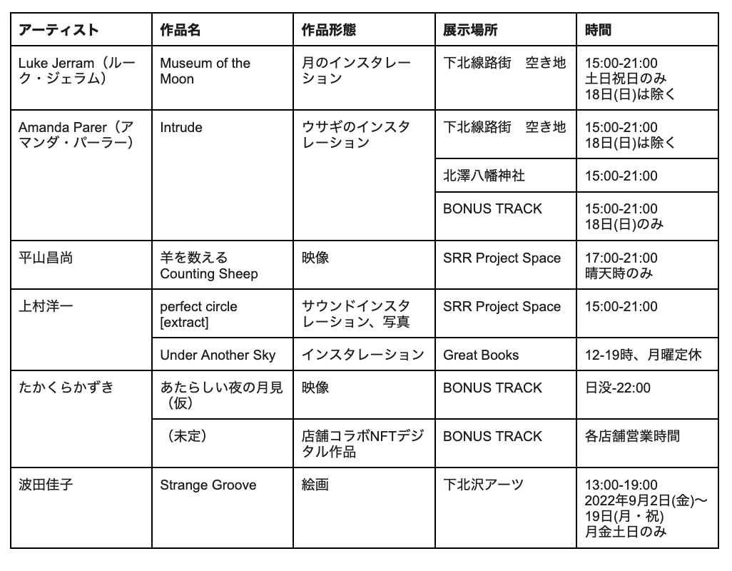 9月10日〜25日、「ムーンアートナイト下北沢」の詳細決定