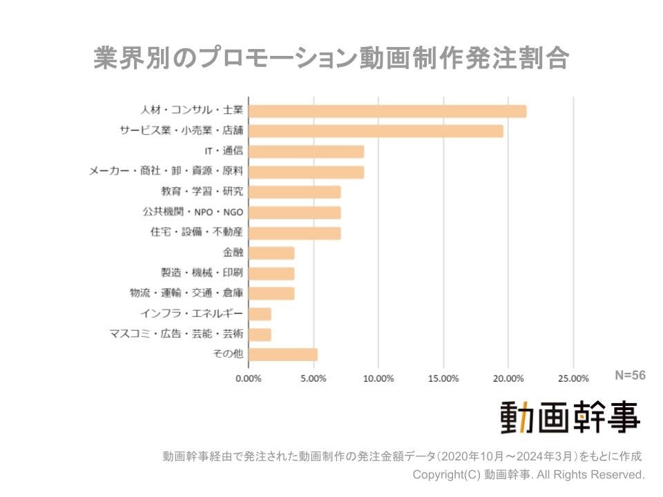 ・プロモーション動画の発注が多い業界は「人材・コンサル・士業」で21.4%