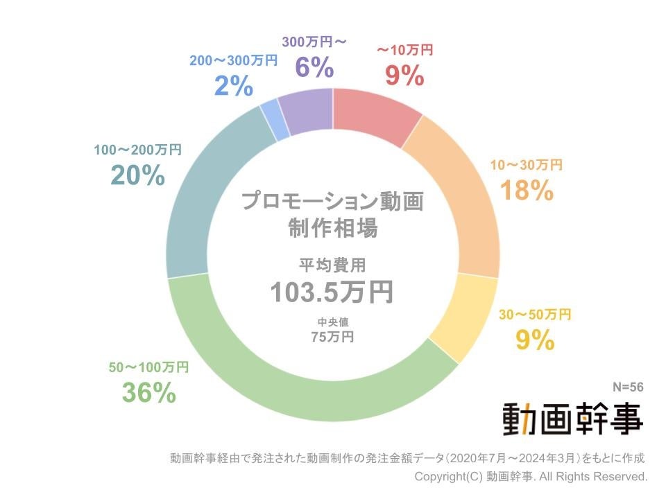 ・プロモーション動画制作の平均相場は103.5万円。中央値は75.0万円