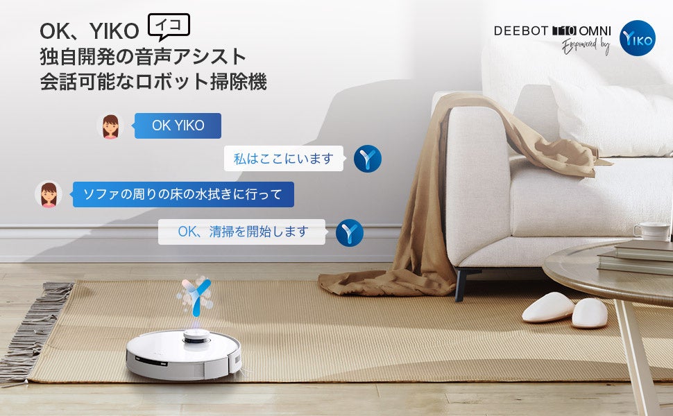 スマートスピーカーの連携無しに、ディーボットに話しかけるだけで清掃開始。アプリを立ち上げる必要無く、手がふさがった状態でも「OK YIKO(オーケーイコ)、掃除開始」の一言で、いつでも簡単に掃除を開始することができます。ソファやベッドの位置をビジュアルで把握する3Dマップをアプリで設定することで、清掃場所を細かく指定して声で清掃指示も可能です。