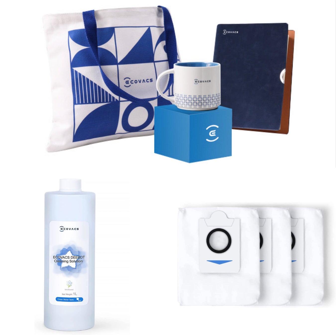 ②ECOVACSオリジナルギフトセット、専用洗浄剤(1L)、交換用エコ紙パック(3枚入り)をプレゼント