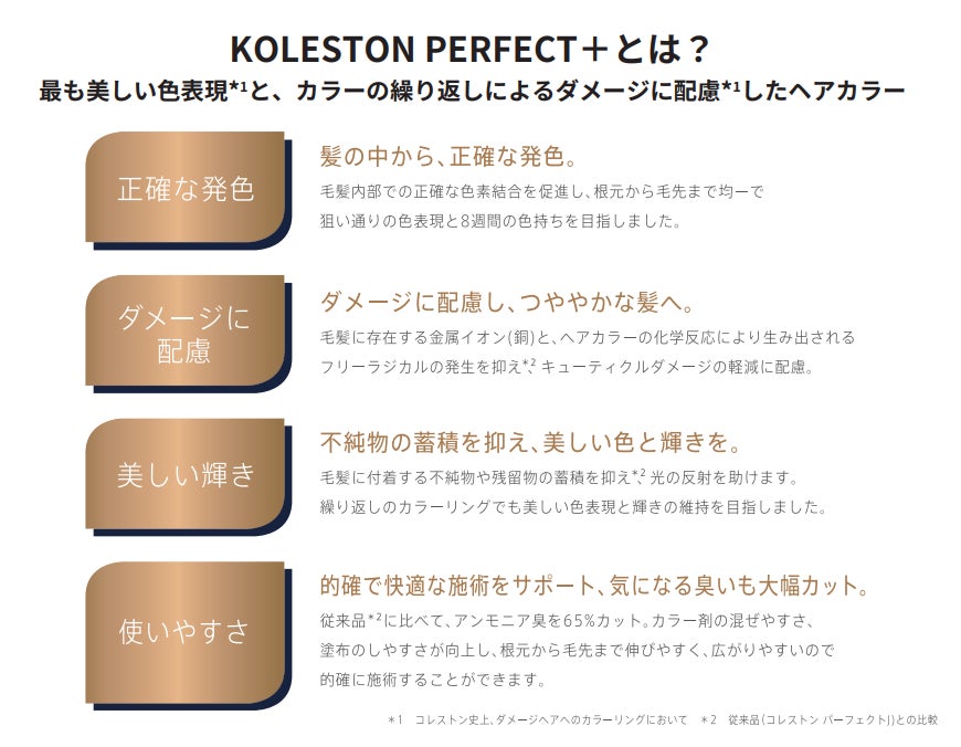 ※1 コレストン史上、ダメージヘアへのカラーリングにおいて ※2 従来品(コレストン パーフェクトJ)との比較 ※3 ウエラ調べ(2024年6月)