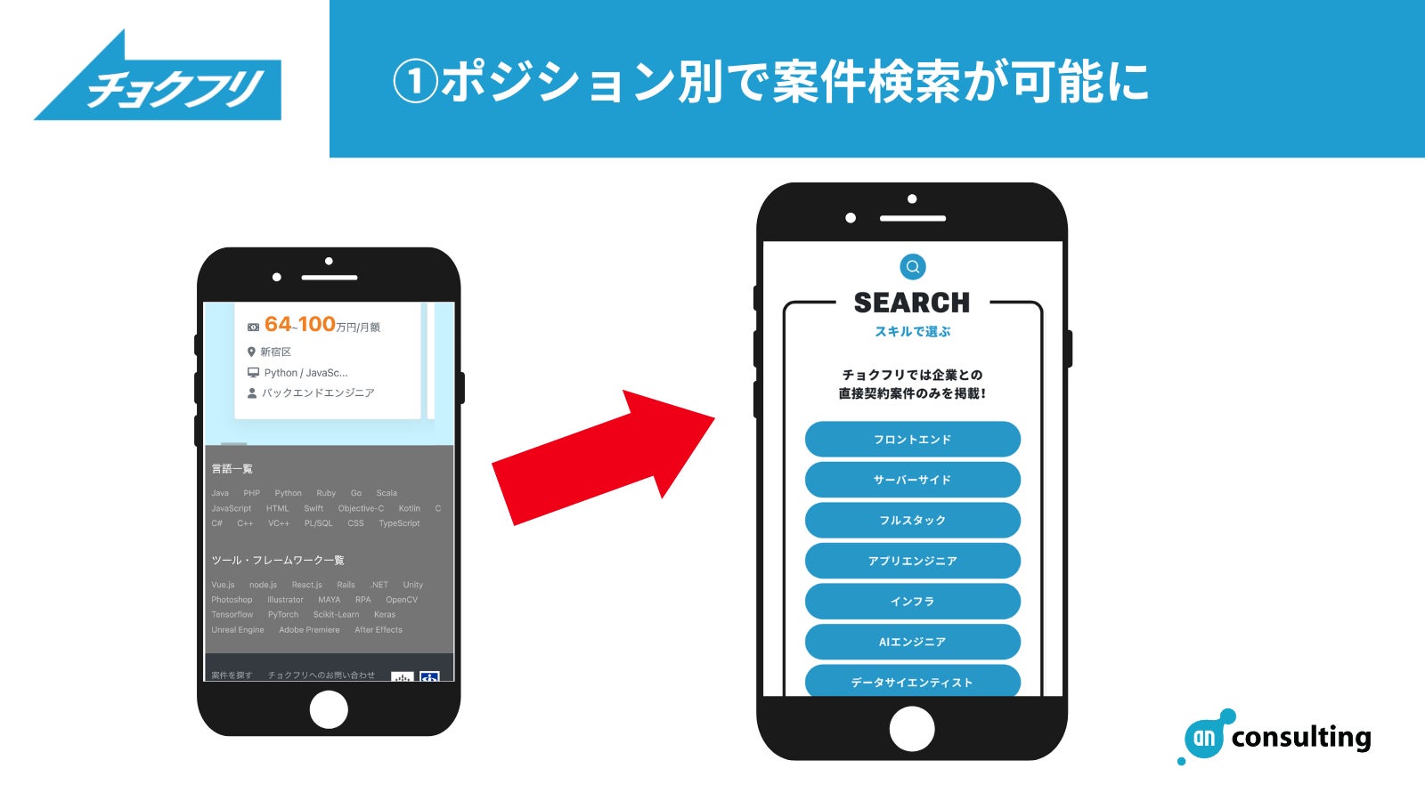 そのため、該当するポジション別に案件を分けることにより、よりユーザーにマッチした案件検索が可能になりました。