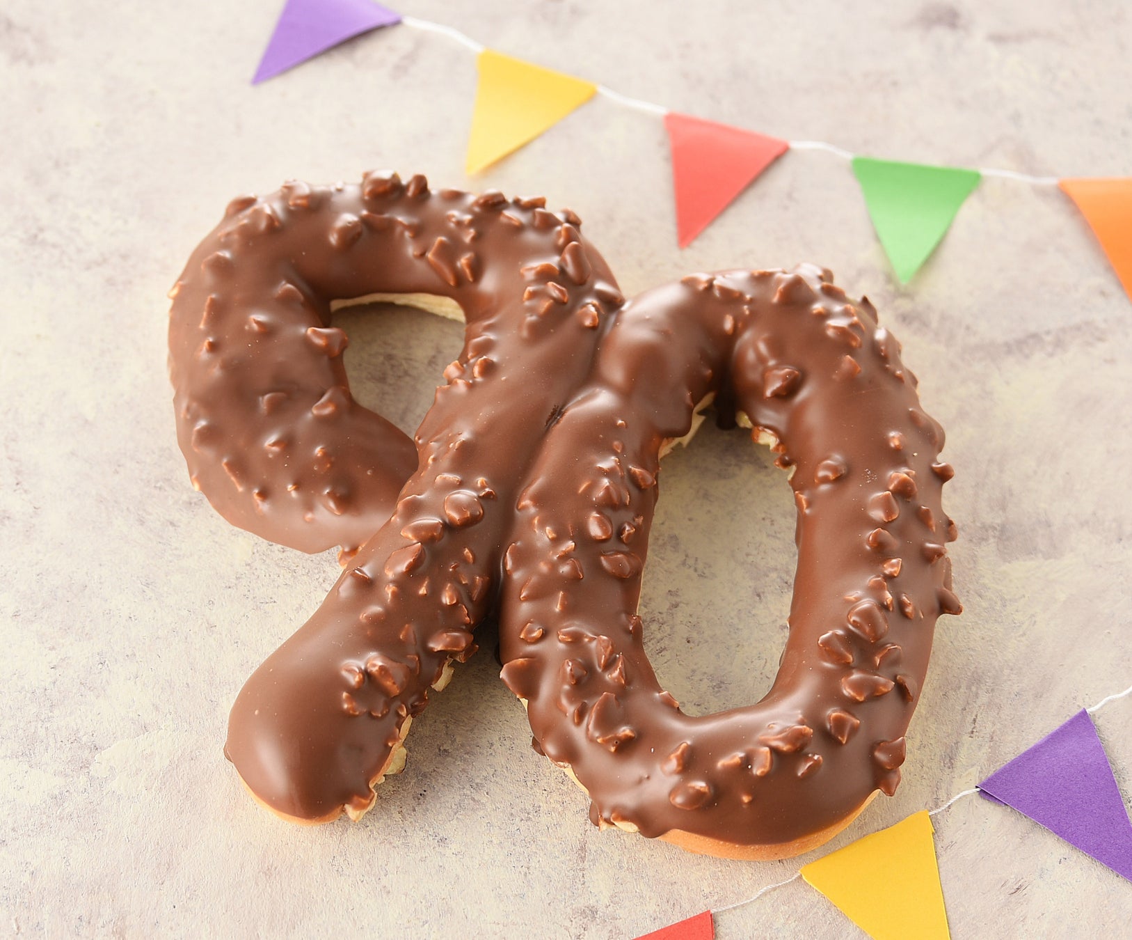 東急百貨店創業90周年を記念して、「90」をモチーフにしたチョコパンを用意しました。しっとりとした生地にアーモンドをまぶして香ばしく焼き上げ、チョコレートでコーティングしました。