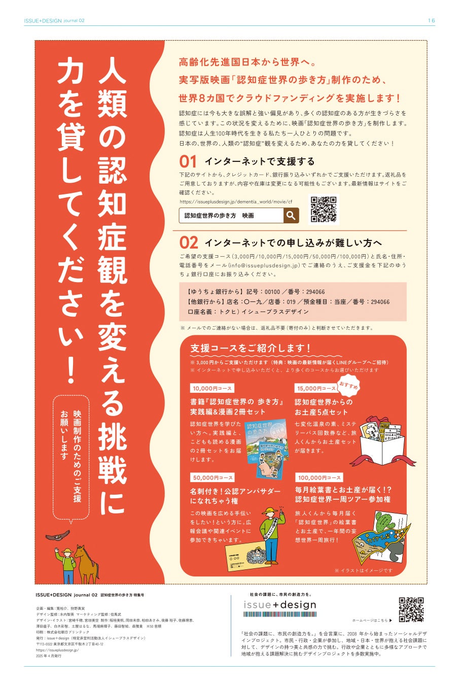 issue+design(特定非営利活動法人イシュープラスデザイン/東京都文京区)は、フリーペーパー『ISSUE+DESIGN journal 02』を発行しました。今回の特集テーマは「認知症」です。
