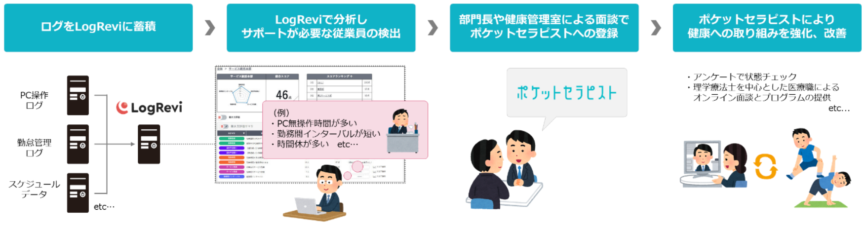 ~統合ログ管理ソフトウェア「LogRevi」と「ポケットセラピスト®︎」の連携で 従業員自らが健康状態を把握、改善活動を行うPDCAサイクルの実現~