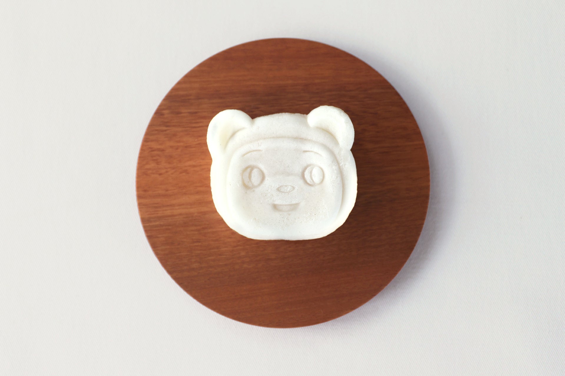 中に入っているのは口どけのよい皮むき餡のこしあん。つぶらな瞳と、ちょこんと飛び出したお耳がチャームポイント。少しレトロで懐かしく感じられる見た目に仕上げました。