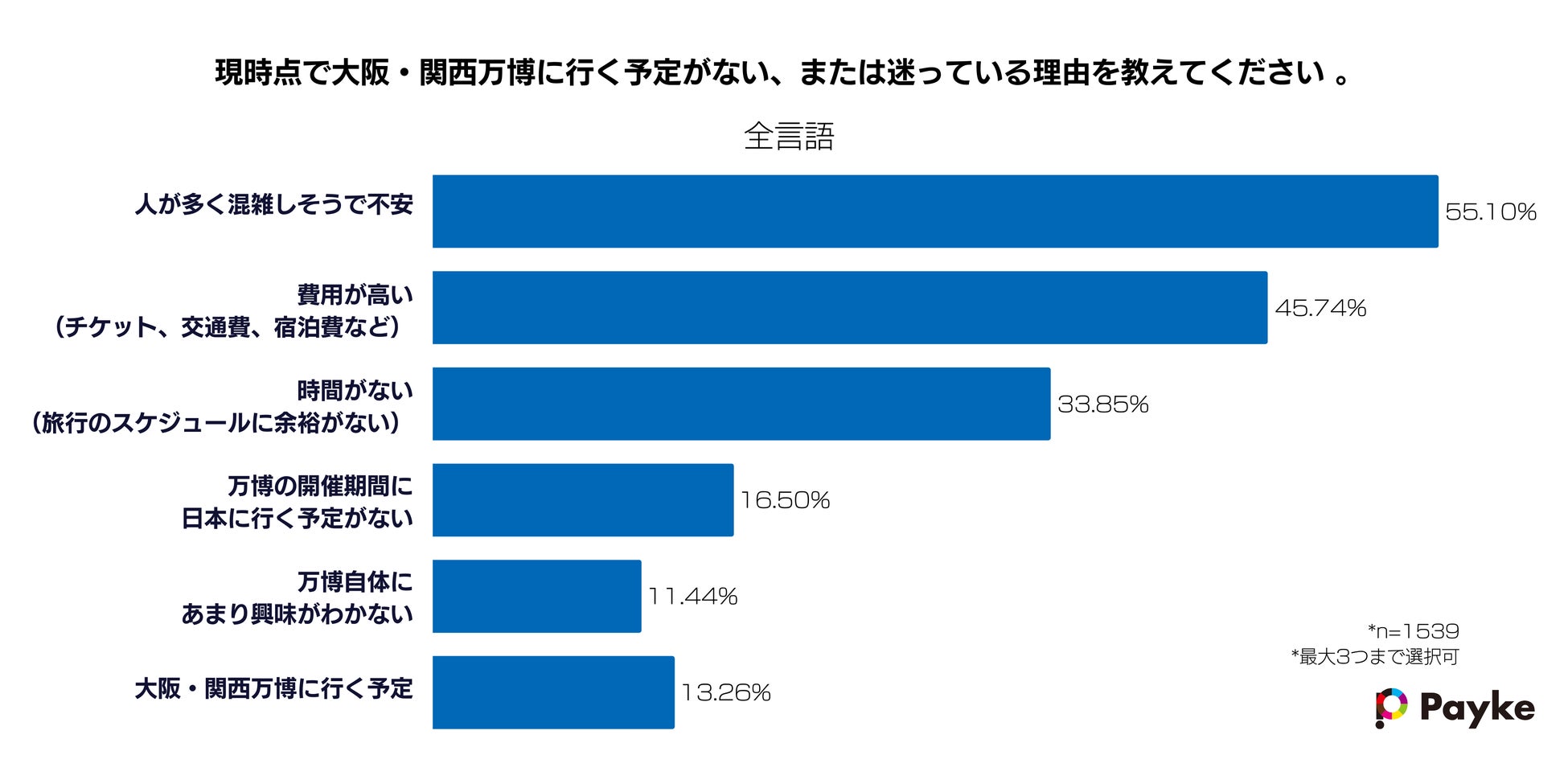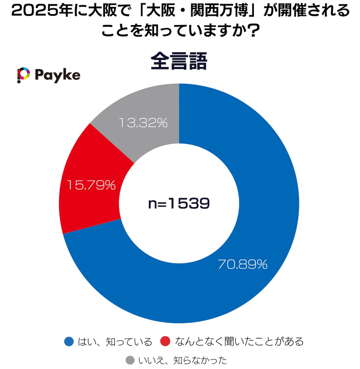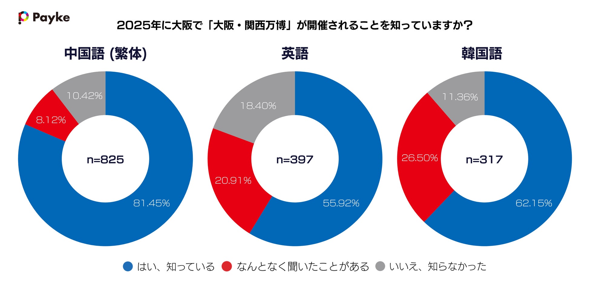 株式会社Payke(ペイク、本社:沖縄県那覇市、代表取締役:古田奎輔、以下「Payke」)は、提供する訪日外国人向けショッピングサポートアプリ「Payke」内で、2025年4月13日より開催される「2025年日本国際博覧会(大阪・関西万博)」に関する多言語意識調査(韓国語・英語・中国語(繁体字))を実施しました。