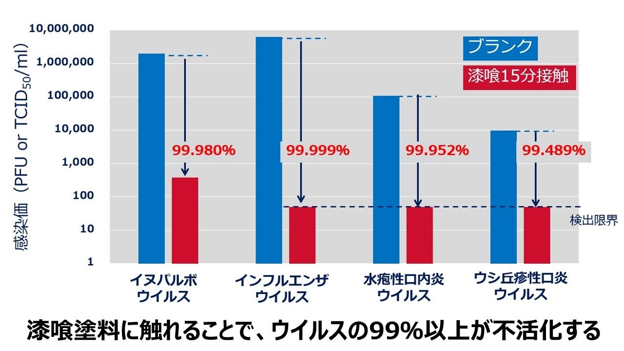 ■漆喰塗料の抗ウイルス効果検証結果 (漆喰塗料コーティングPETシートで検証)
