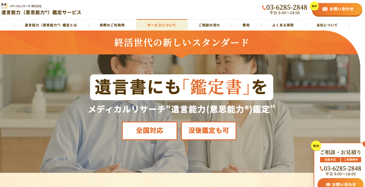 意思能力鑑定サービスサイト:https://www.medicalresearch.co.jp/mental-capacity/