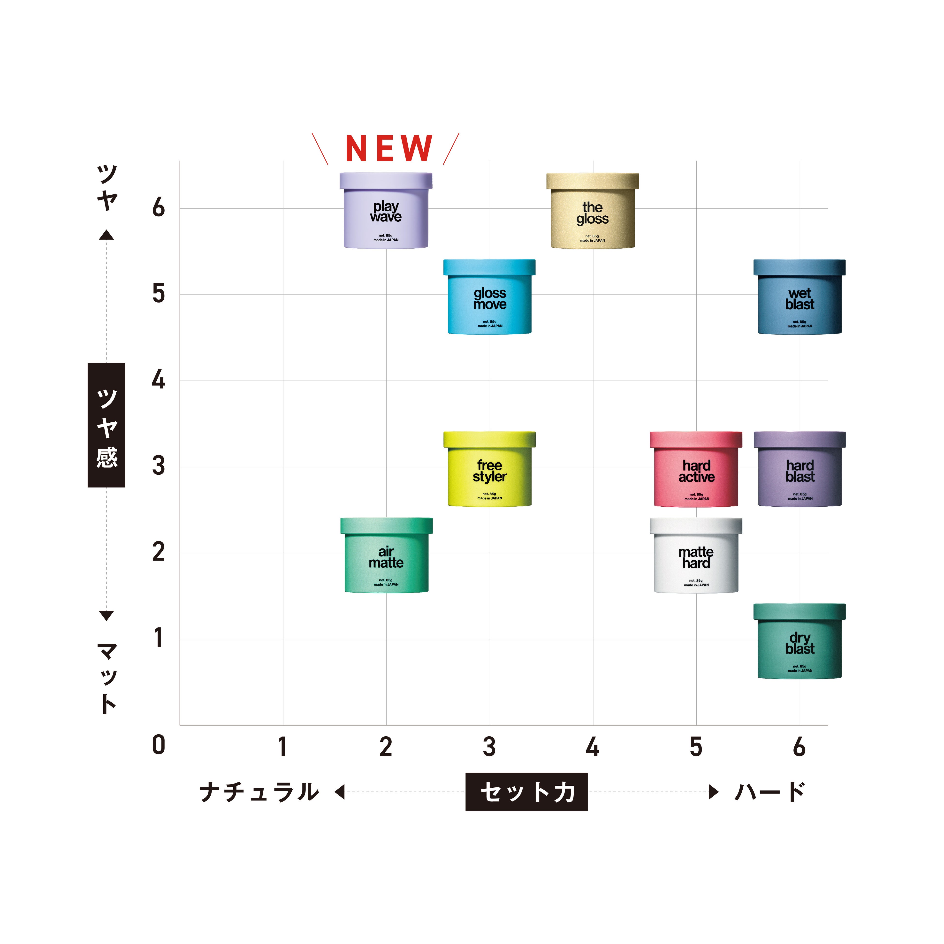 パーマスタイルの為の新定番「リップスヘアー プレイウェーブワックス」のデビューにより、すでに好評のシリーズのラインナップは全10種類へと拡充。スタイリング市場でのさらなる存在感確立を狙うとともに、お客様へ選択肢の幅を広げて参ります。