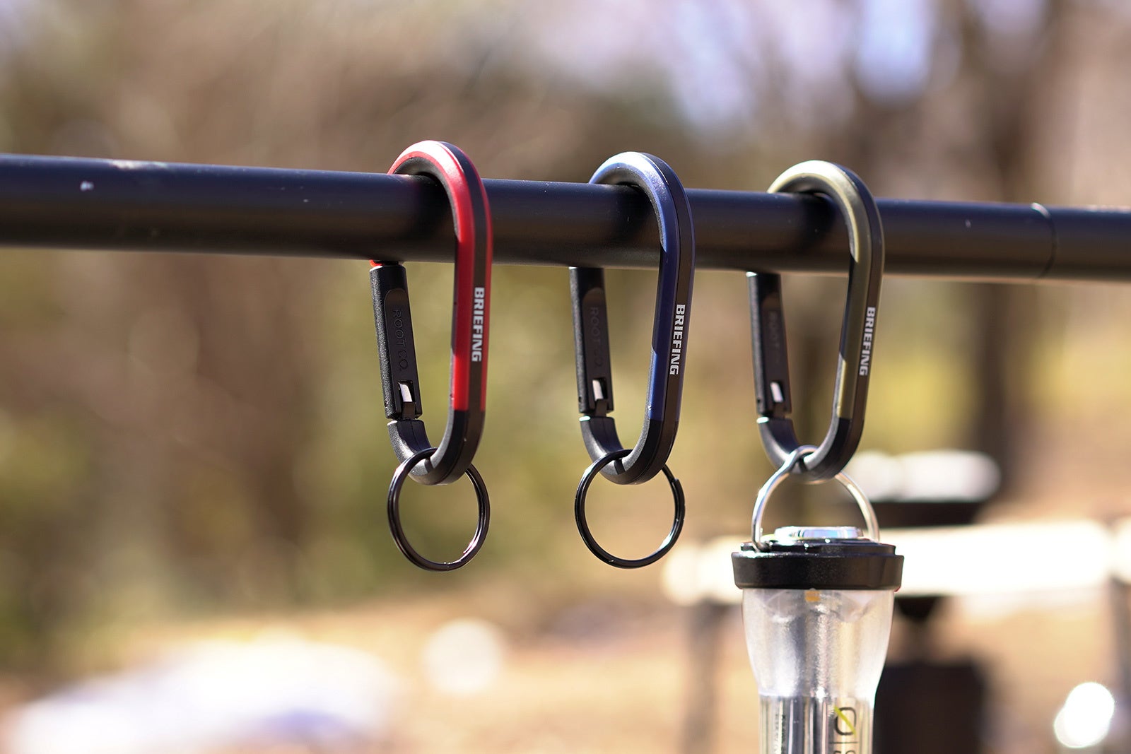 カラーアクセントを加えた3つのバイカラーにBRIEFINGのロゴをプラス。アウトドアシーンやギアとの相性抜群なスタイリッシュなカラビナです。
