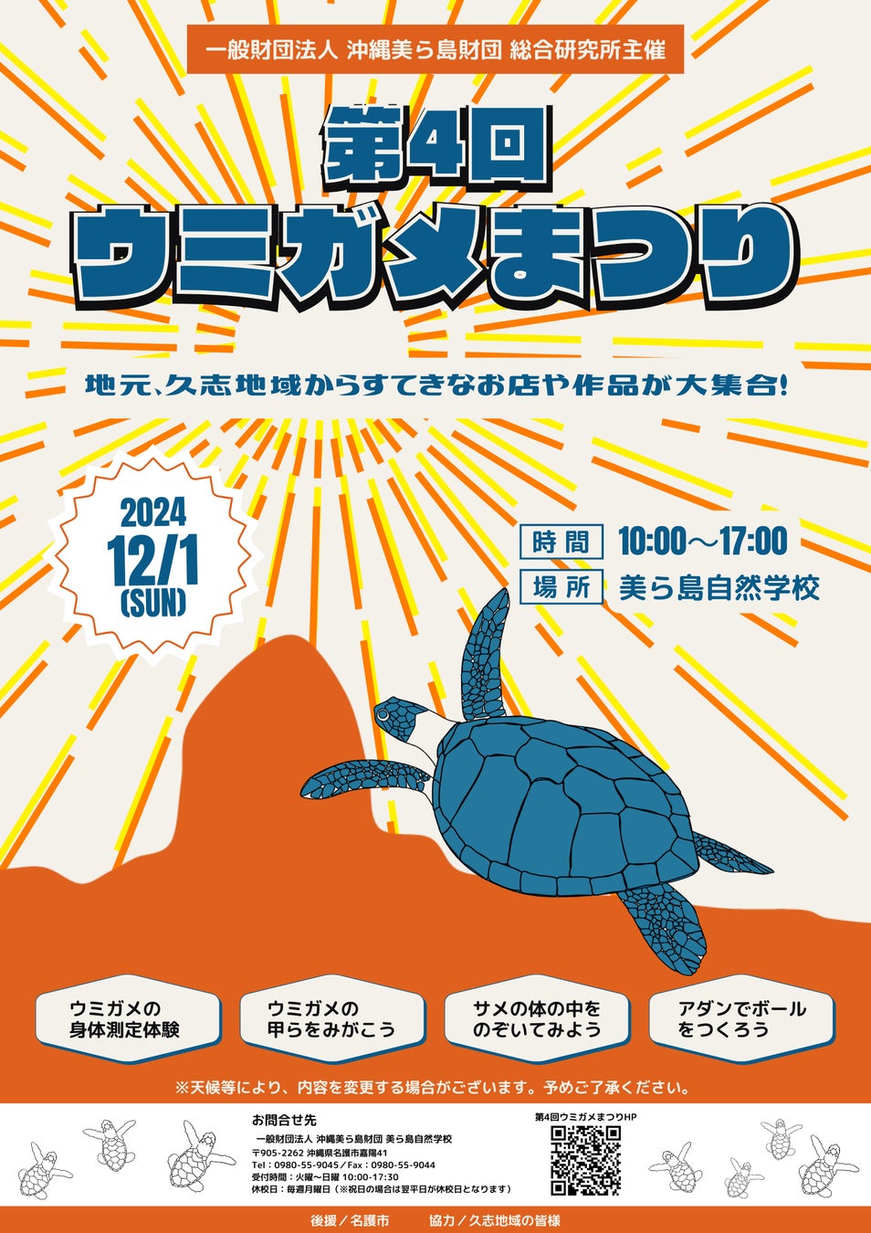 【(一財)沖縄美ら島財団】美ら島自然学校にて第4回「ウミガメまつり」開催!2024年12月1日(日)