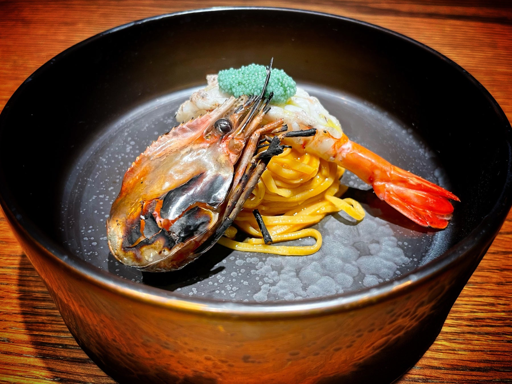 イタリアンの技法で仕上げたタリオリーニ。北海道産の牡丹海老の甘みと旨味が織りなす