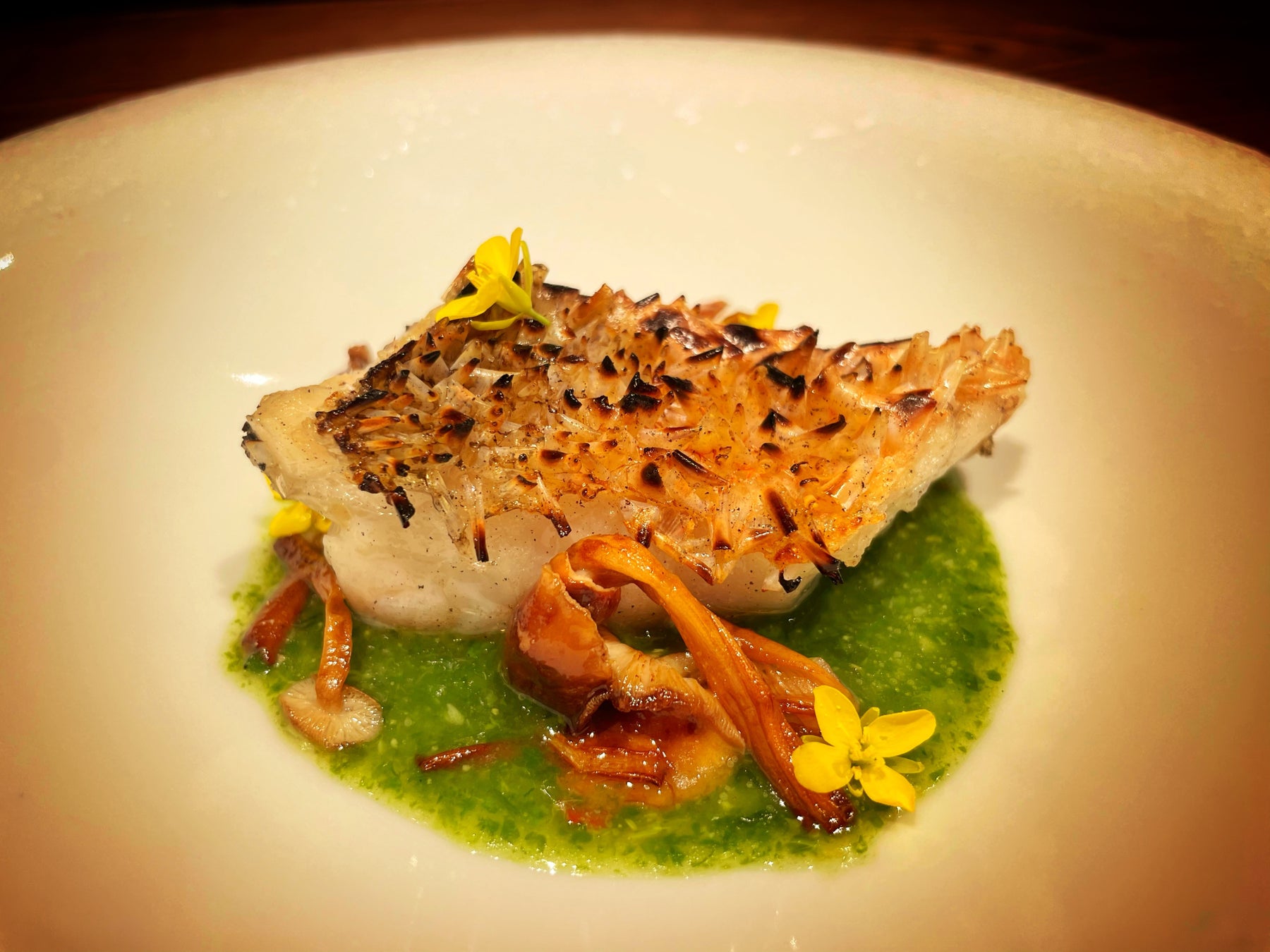 ロゼール産の仔羊を、薪火でじっくりと焼き上げ、その香ばしさと柔らかさを引き出した