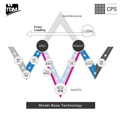 TDMは、消費者視点での不明瞭な要求を基に、効率的な価値設計を実践するための開発プロセスです。システムデザインの段階で、消費者の潜在的欲求にインパクトを与える価値指標を定量化し、システム仕様を明確なモデルで表現。シミュレーションを駆使して、設計したシステムの効果と実現性を迅速に検証します。様々な設計案を試し、実現可能な最も価値のある設計を繰り出す支援環境だといえます。TDMでは、精緻な仮説検証を実施するため、経済産業省モデリングルールに準拠した、機能や性能の統合インターフェースを提供し、システム全体の性能をシステムデザインの段階で正確に検証できるようにしています。設計の初期に機能や性能を確定的に分配できれば、後戻りの発生を減らせると同時に、後工程の詳細設計も自動化しやすくなります。