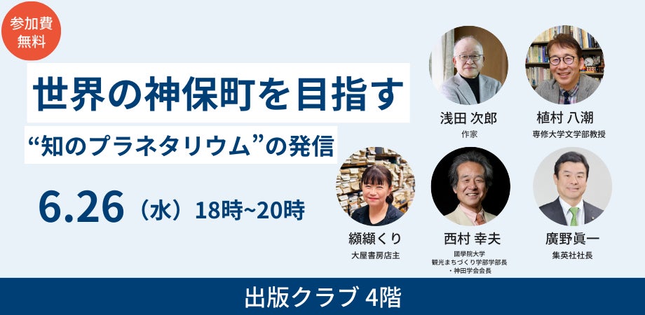 東京文化資源会議(会長:吉見俊哉)は、2024年6月26日(水)午後6時~8時に、日本出版クラブ(東京都千代田区神田神保町1-32)にて、シンポジウム「世界の神保町をめざす "知のプラネタリウム"の発信」を開催します。