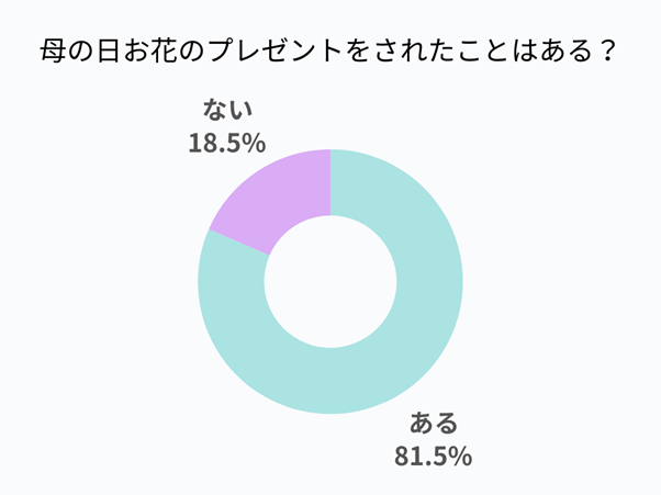 母の日にお花をプレゼントされた経験があると答えた方は、81.5%(上図)でしたが、