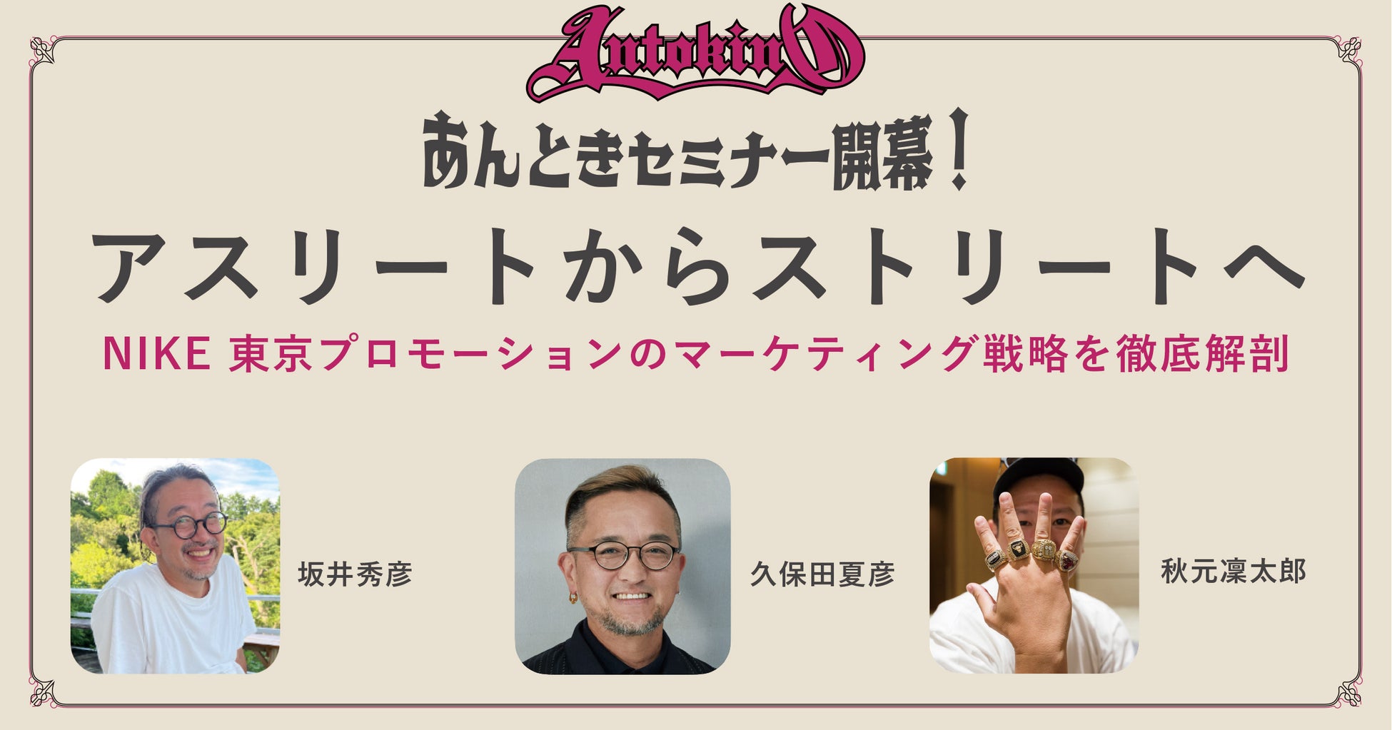 第一回目にご登壇いただくのは、数々の伝説的な施策によって東京をスニーカーの中心地に変えた NIKE 東京プロモーションに所属していた、坂井さん、久保田さん、秋元さんのお三方。