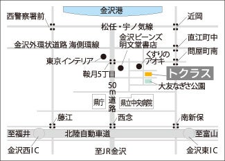 石川県庁の周辺エリアである鞍月地区に位置し、遠方からのご来場でもわかりやすい便利な立地です。