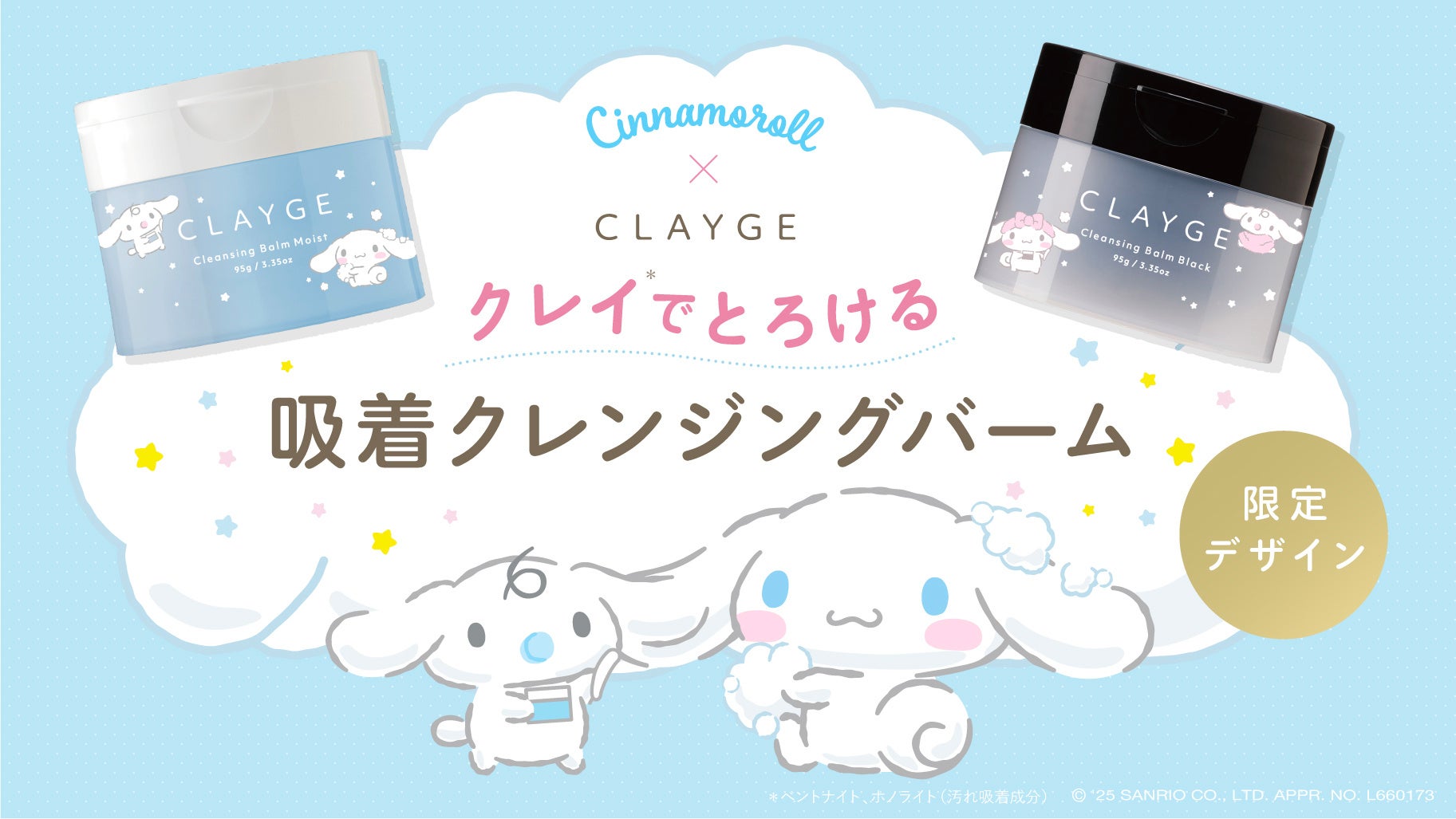 こだわりのクレイ成分を配合したプロダクトで、毎日の生活に癒しを届ける、ヘアケア・スキンケアブランドの『CLAYGE(クレージュ)』の人気定番商品の『クレンジングバーム モイストN』、『クレンジングバーム ブラックN』がシナモロールとコラボレーション。