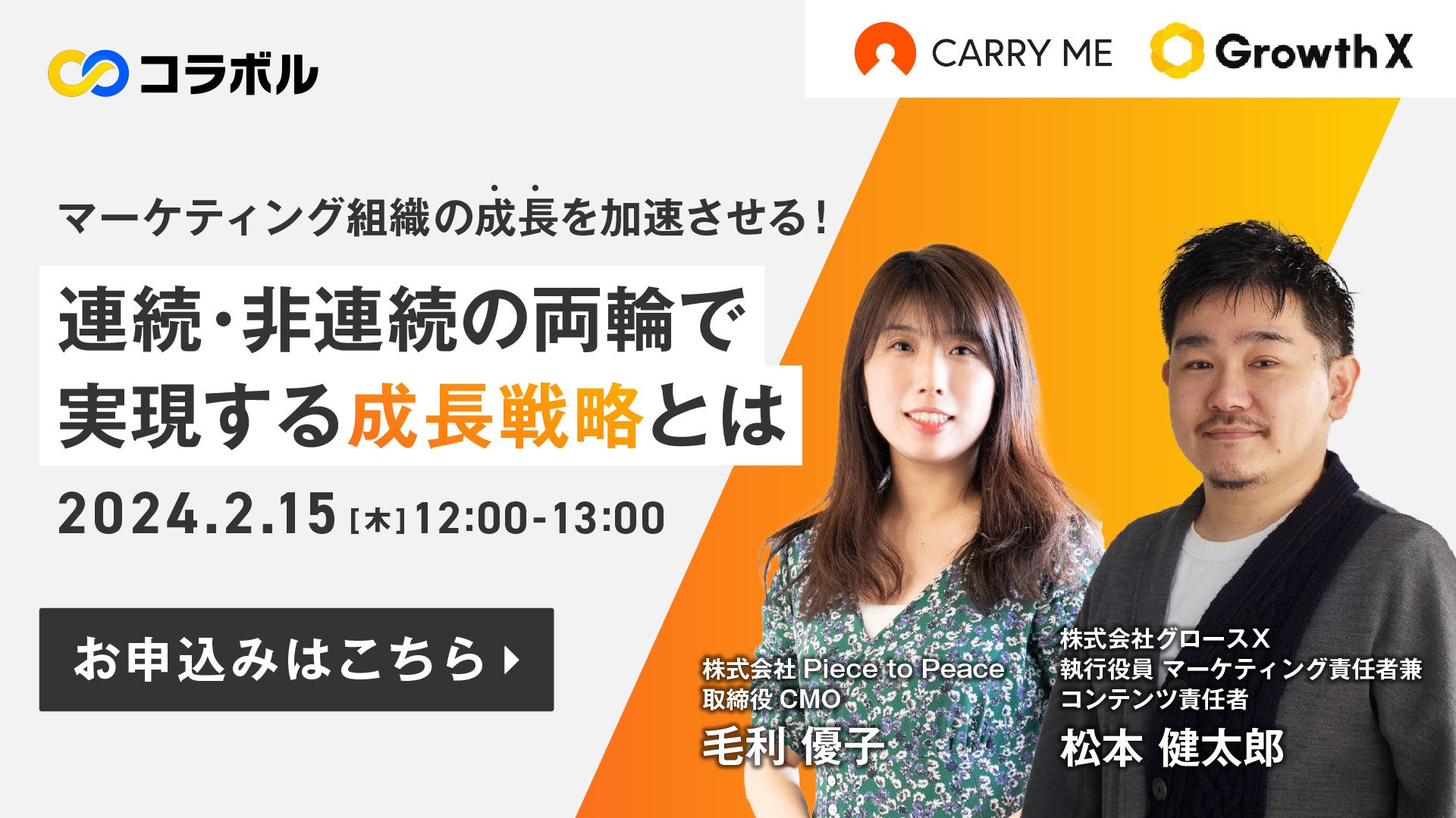 ■ 登壇者:株式会社グロースX 執行役員 マーケティング責任者 兼 コンテンツ責任者 松本 健太郎氏、株式会社Piece to Peace 取締役 CMO 毛利 優子