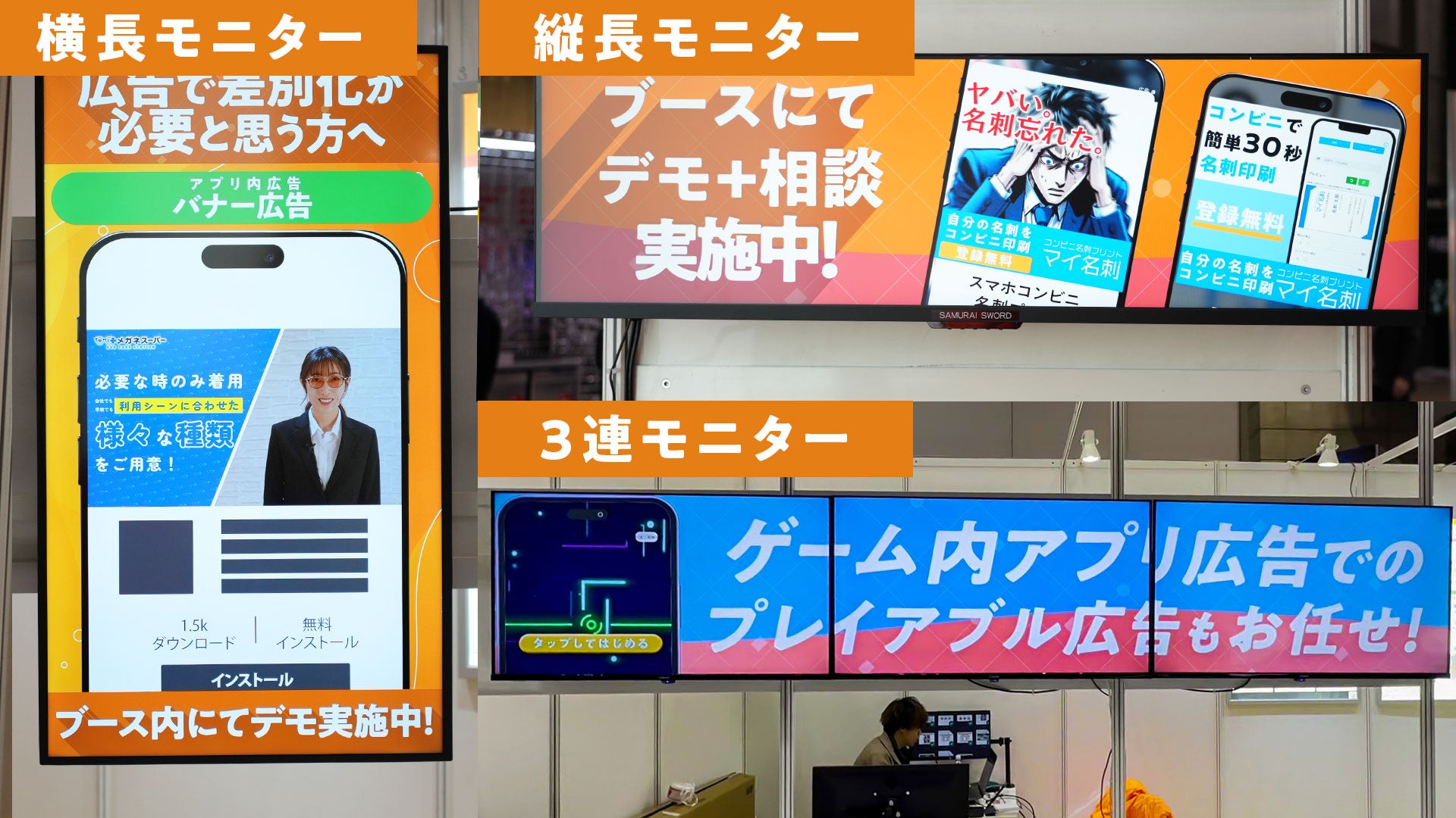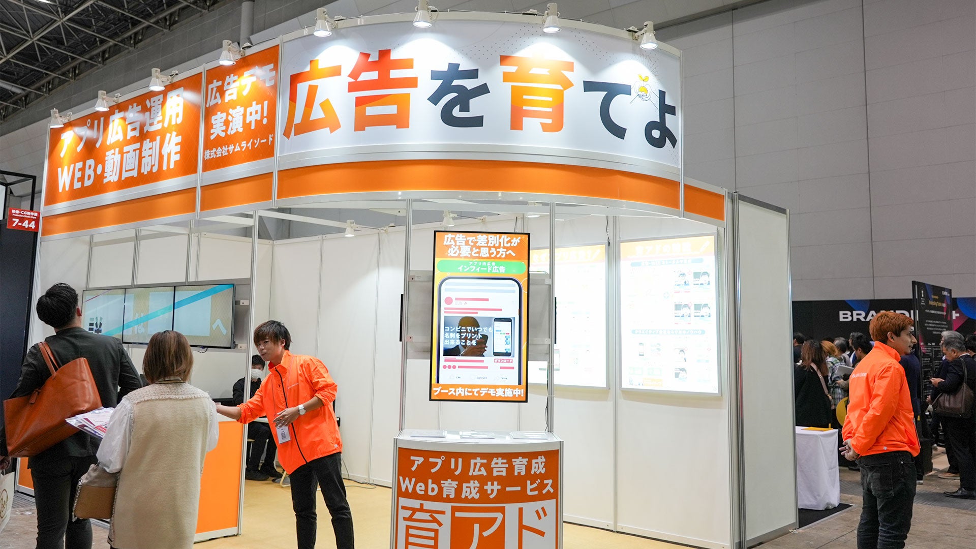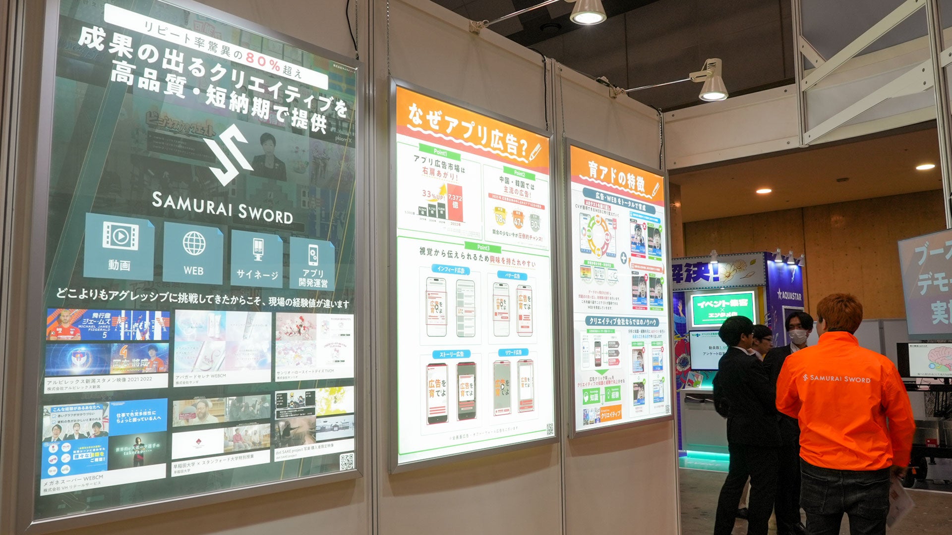 展示会では【アプリ広告育成+WEB育成サービス】『育アド』の特徴や活用事例、クリエイティブ制作事例の紹介を始め、アプリ広告出稿のデモンストレーションを行いました。